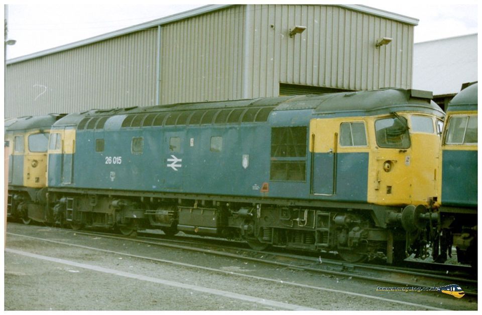 26015 built at the Birmingham Railway Carriage & Wagon works, Smethwick delivered 13/02/1959 as D5315. 47 of the calss were built. Worked in the London area for the first few years then moved to Scotland were they all remained until disposal. Renumber 26015 25/05/1974. Worked in Scotland until its withdrawal 23/06/1991. Arrived at Inverness 17/08/1992 for storage due to its general poor condition. It was broken up by MC Metals in September 1994. There is some good news, 13 of the class have been saved, although 7 of this are actually in storage. Their future is unknown.